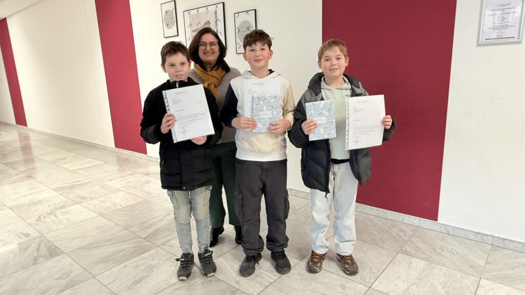 Die schulinterne Jury, darunter auch der Vorjahressieger Fynn Hauser, legte fachkundig die Gewinner fest: Den ersten Platz belegte Jonas Mayer mit dem Buch „Paluten Freedom“, für ihn geht es jetzt weiter zum Kreisentscheid. Auch Samuel Arnone mit „Mission Roboter“ und Tyler Wolf mit „Gregs Tagebuch“ konnten sich als Klassensieger über Buchpreise und Nikolaussüßigkeiten freuen, für den Erstplatzierten gab es zusätzlich sogar noch einen Büchergutschein. Die Preise wurden auch in diesem Jahr von Simone Behme (Buchhandlung J. Behme Prüm) zur Verfügung gestellt (FJac).