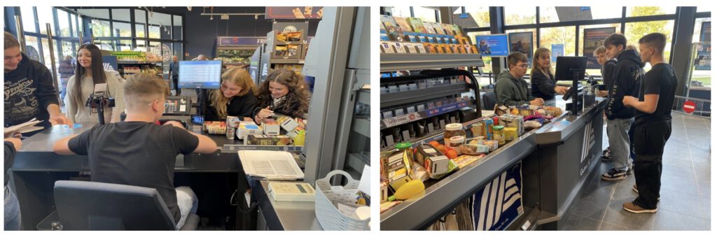 Im Anschluss konn­ten die bal­di­gen Aus­zu­bil­de­nen das neu auf­ge­nom­me­ne Wis­sen an drei Sta­tio­nen spie­le­risch unter Beweis stel­len. Hier wur­de Pro­be­kas­siert, Sor­ti­ments­wis­sen geprüft und ein­zel­han­dels­spe­zi­fi­sches Voka­bu­lar trainiert.
