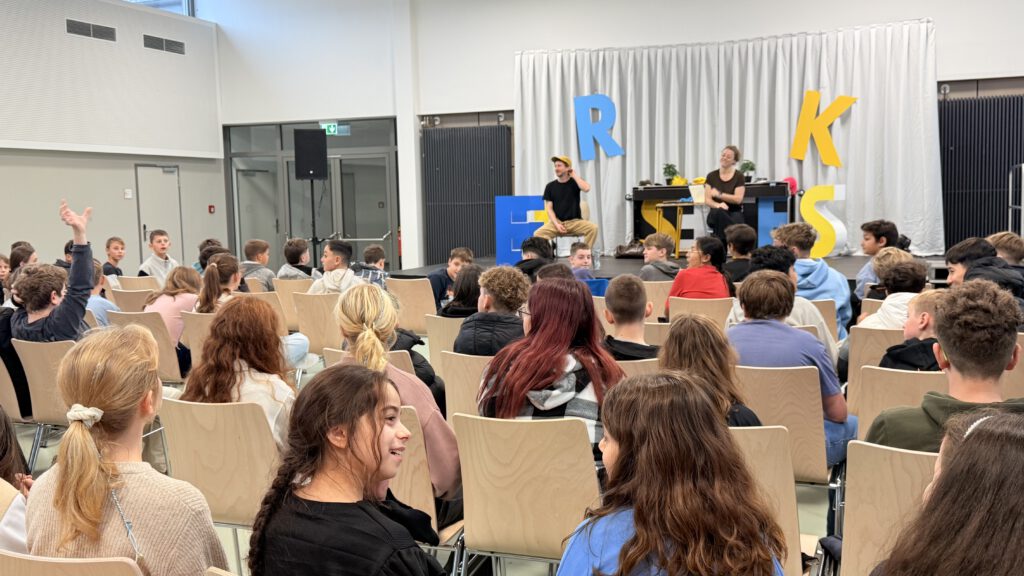 Heute auf dem Stundenplan: „RESPEKT für Dich!“ – ein Theaterstück für all unsere Klassen 5 bis 8 im Rahmen des Präventionskonzeptes der Kaiser-Lothar-Realschule plus (Schulsozialarbeiterin Carolin Broy). Das Stück von „Zartbitter e.V.“ behandelt das Thema sexuelle Gewalt und digitale Übergriffe durch Jugendliche. Es zeigt auf humorvolle und mutmachende Weise, wie Jugendliche betroffene Freunde unterstützen und Hilfe organisieren können, während es sich gleichzeitig gegen Gewaltverherrlichung abgrenzt. Fazit der befragten Schülerinnen und Schüler zum Stück: „Gute Darsteller, interessant, empfehlenswert, hilfreiche Tipps.”